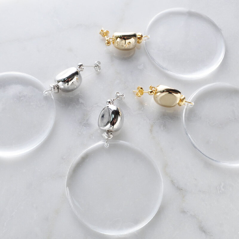 【アレルギーフリーパーツ交換可能】クリア アクリル ディスク ピアス / イヤリング 大ぶり 透明 夏 光 軽い アレルギーフリー レディース アクセサリー ※ゆうパケット送料無料