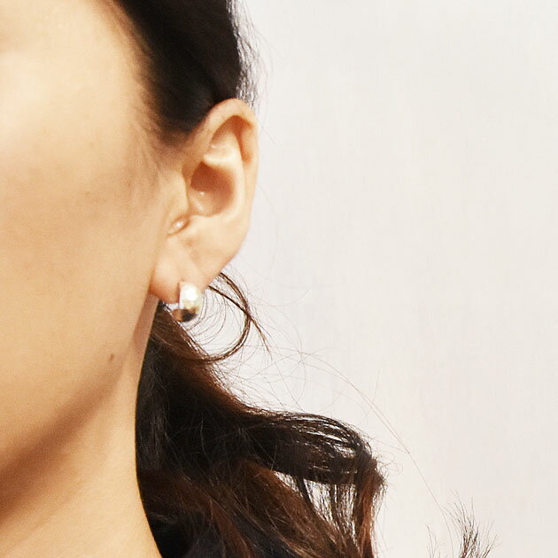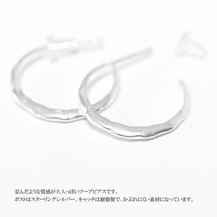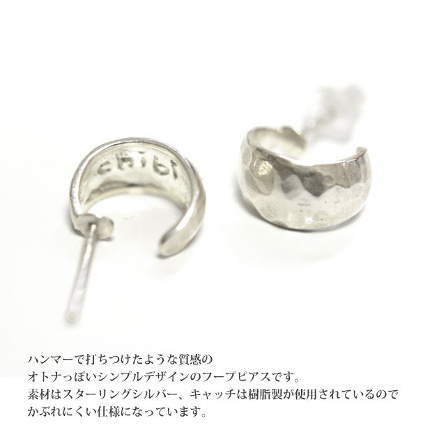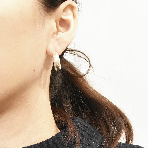 【再入荷】【GW限定 全品10%OFF】≪chibi jewels≫ チビジュエルズハンマード 幅広 シルバー フープ ピアス Small Hammerd Half Hoop Earrings (Silver)【レディース】