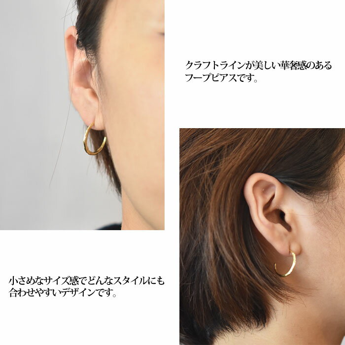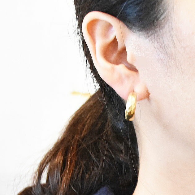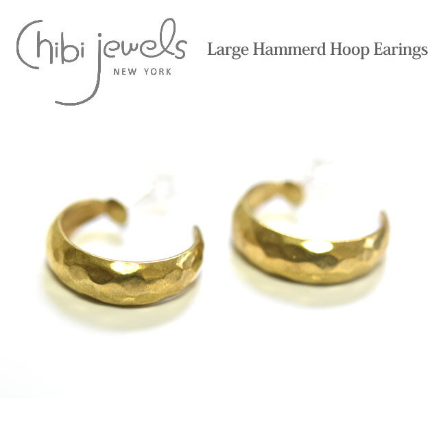 【GW限定 全品10%OFF】≪chibi jewels≫ チビジュエルズハンマード 幅広 ゴールド フープ ピアス Large Hammerd Half Hoop Earrings (Gold)【レディース】