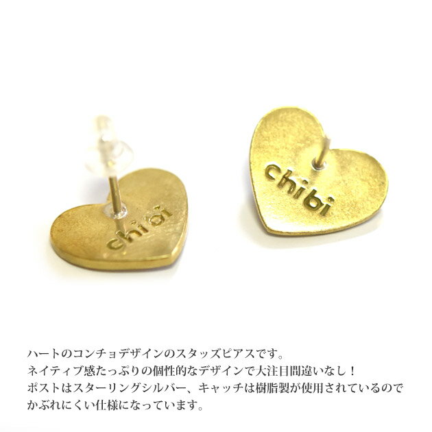 【GW限定 全品10%OFF】≪chibi jewels≫ チビジュエルズボヘミアン ハートコンチョ ゴールド スタッズ ピアス Heart Concho Stud Earrings (Gold)【レディース】
