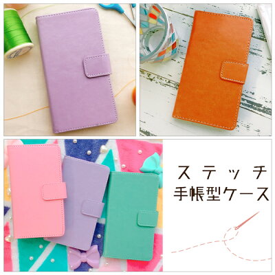 カラフルなPUレザーに白いステッチが人気の手帳型ケースです。